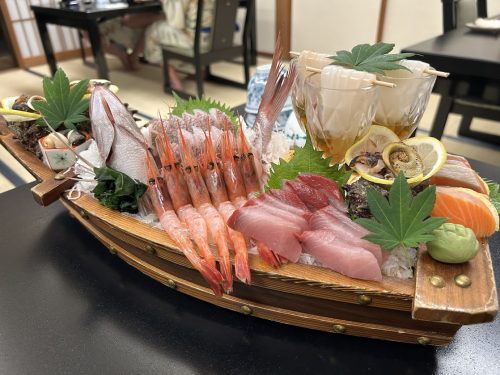 伊藤屋では佐渡牛ステーキプラン、舟盛りプランなどがあり好きなプランを選べます。わが家は刺身が好きなので舟盛りプランにしました。